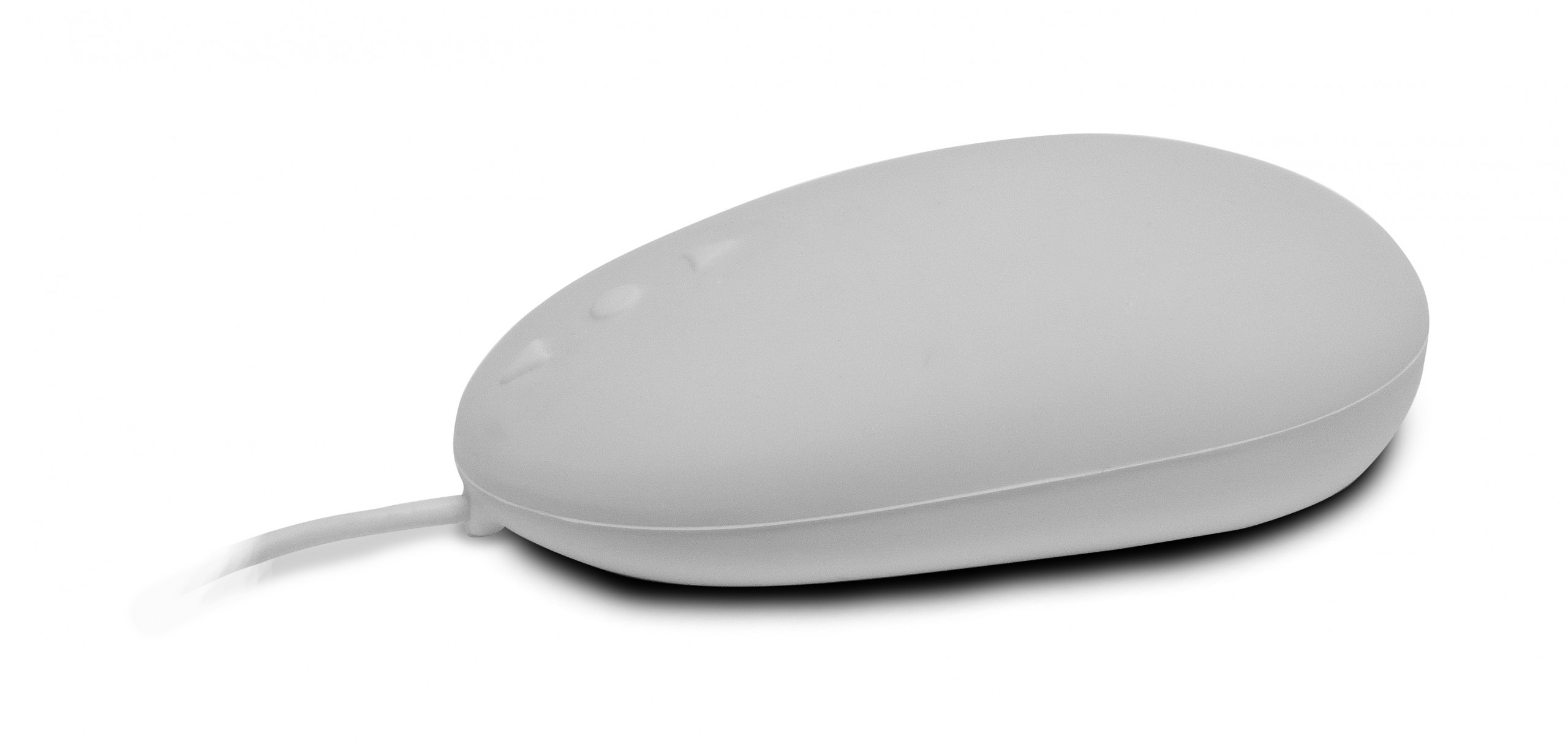 Die kabelgebundene Version der Hygienemaus von PUREKEYS mit rechter und linker Maustaste, sowie 3 Tasten für die Scrollfunktion.
